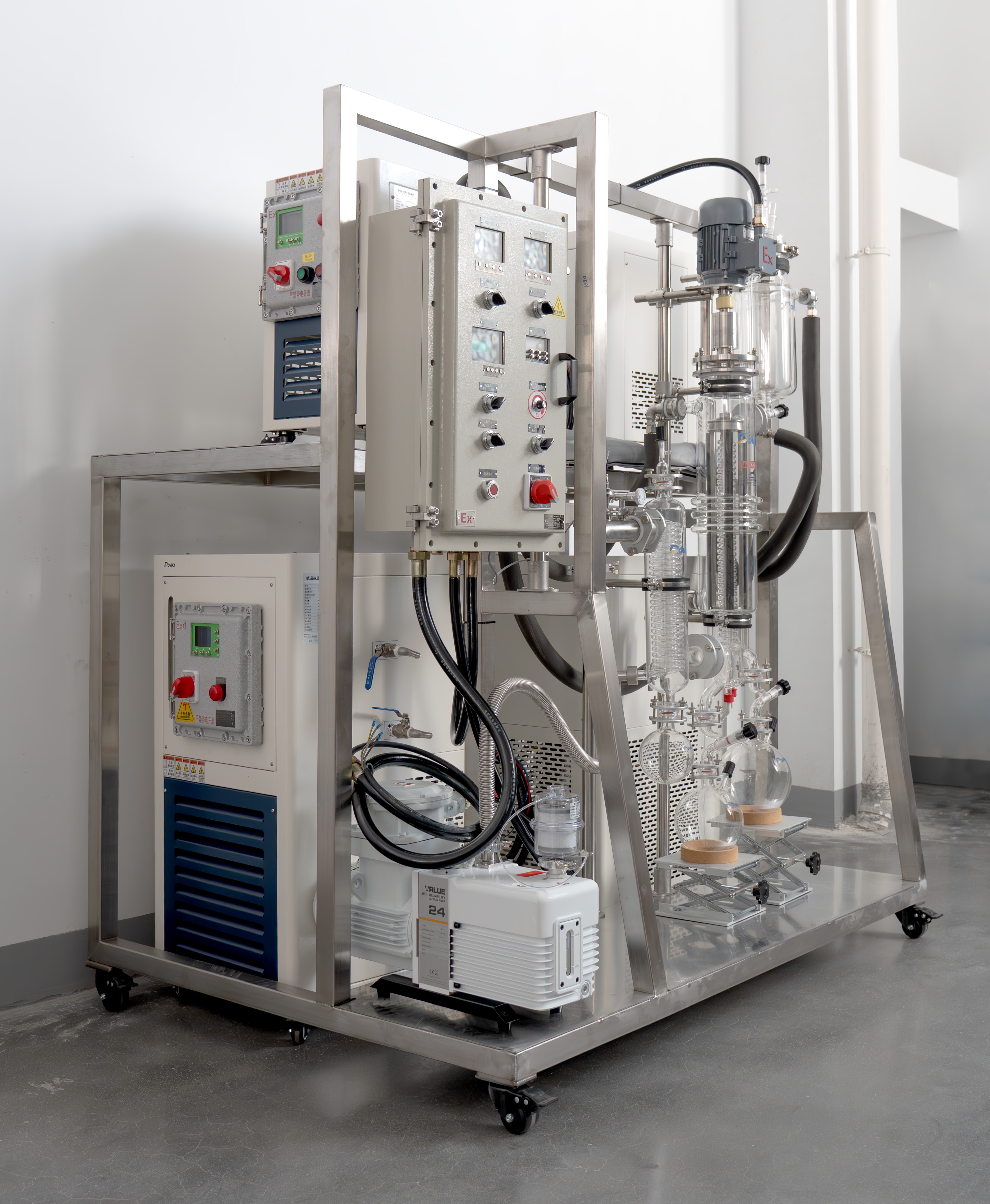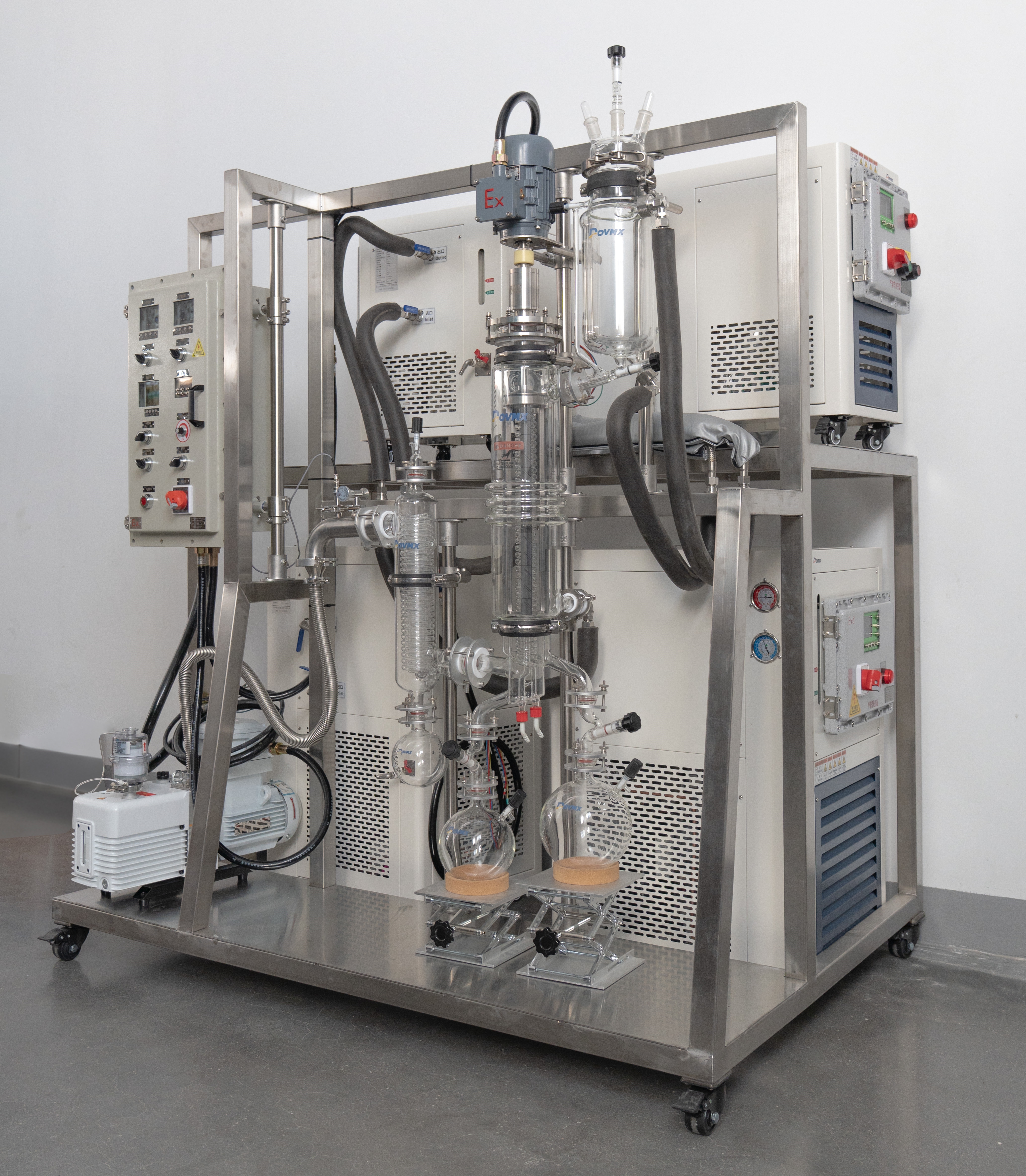 分子蒸馏(又称短程蒸馏)起源于20世纪20年代,是一项区别于传统蒸馏的技术。它不依赖沸点差异,而是在高真空环境(通常压力低于0.1Pa)下,使轻质分子的平均自由程大于重质分子,从而让轻组分直接飞向冷凝面被收集,重组分则留在蒸发面,实现高效分离.由于其操作温度远低于物质沸点、受热时间短,能有效保护热敏性成分的活性与结构。